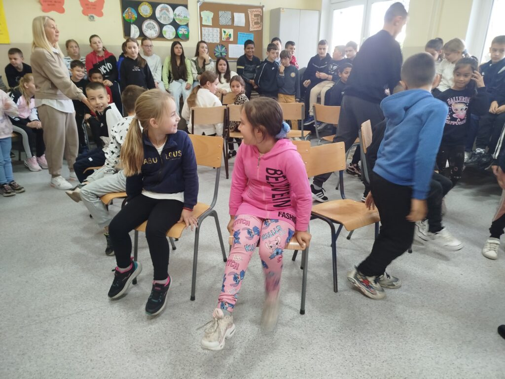 Такмичење у игри „Музичке столице“. Учесници су сви